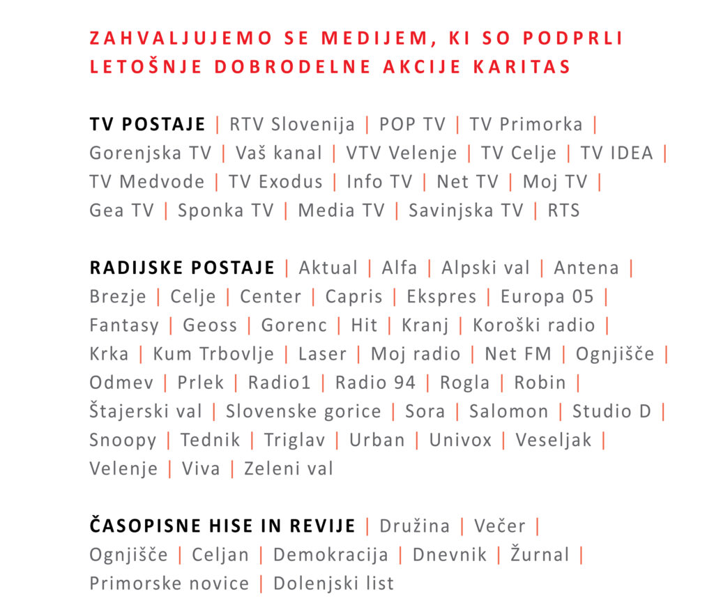 Slovenska karitas, Kristanova ulica 1, 1000 Ljubljana, TRR : SI56 02140-0015556761