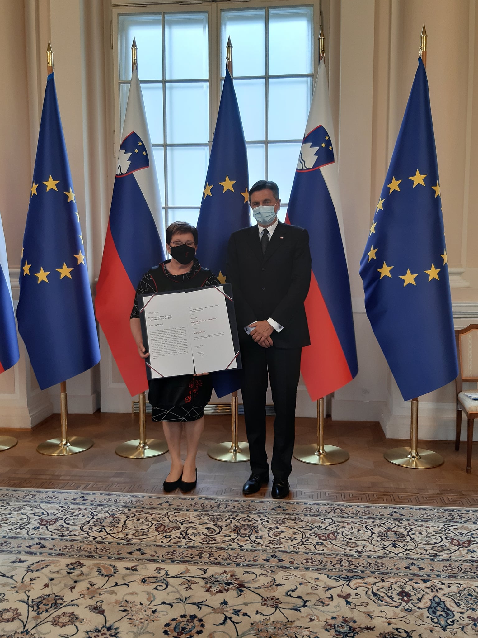 Predsednik Republike Slovenije Borut Pahor je v sredo, 19. 5. 2021 v Veliki dvorani Predsedniške palače priredil sprejem ob podelitvi državne nagrade in priznanj na področju prostovoljstva za leto 2021. Gre za najvišja državna priznanja za izjemne dosežke na področju prostovoljstva, njegove promocije in razvoja, ki jih prostovoljkam, prostovoljcem oziroma prostovoljskim organizacijam vsako leto podeli Odbor Republike Slovenije za podelitev državnih priznanj na področju prostovoljstva.