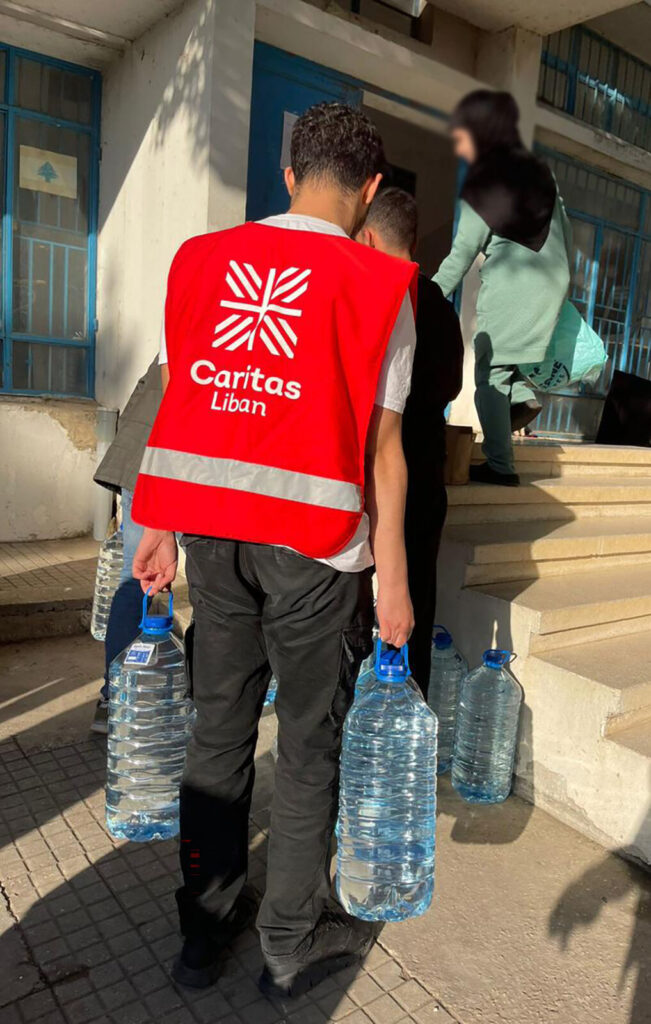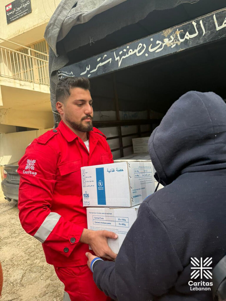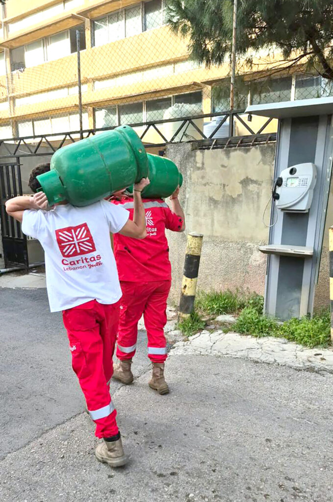 Kljub razmeram Caritas nadaljuje humanitarno pomoč. Caritas Jeruzalem zagotavlja tople obroke, denarno pomoč in nujno zdravstveno oskrbo v svojih centrih, tudi v Tajbehu, Ramali in Gazi. Caritas Libanon je aktivirala ekipe za nujni odziv, ki na terenu zagotavljajo hrano, organizirajo humanitarne konvoje in pomagajo razseljenim v začasnih nastanitvah.