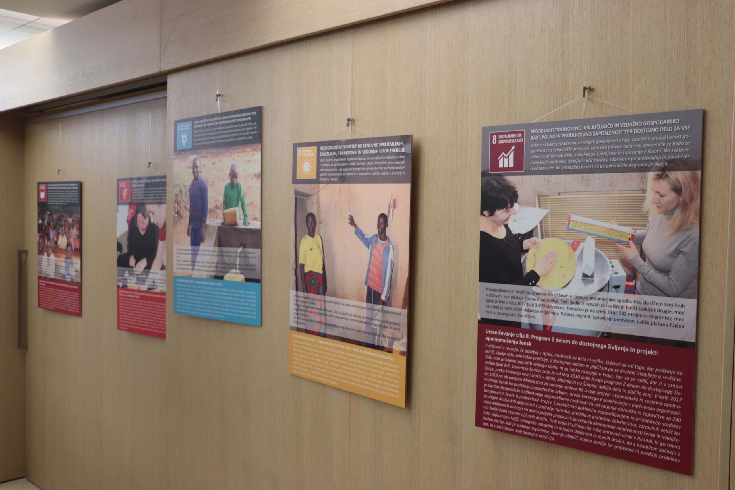 Po zaključku so otvorili tudi izobraževalno mobilno razstavo Ciljev trajnostnega razvoja, katere avtorica je tudi Jana Lampe, vodja mednarodnega razvojnega sodelovanja in humanitarne pomoči na Slovenski karitas. Ob tem je povedala: »Fotografije so nastale večinoma ob spremljanju razvojnih in humanitarnih projektov v Afriki in na Zahodnem Balkanu, ki jih podpira Slovenska karitas preko lastnih akcij in ob sofinanciranju Ministrstva za zunanje zadeve RS. Še posebej na podeželju v Afriki ljudje živijo zelo preprosto. Preživljajo se večinoma od tega kar pridelajo na zemlji, ker drugih možnosti ni, živijo v hišah iz blata, hodijo peš s kanticami po vodo, otroci pogosto nimajo možnosti hoditi v šolo… Preko naših razvojnih projektov, ki jih izvajamo z misijonarji in lokalnimi Karitas, pa jim pomagamo, da imajo dostop do hrane, vode, kvalitetnega izobraževanja in zdravstvene oskrbe ter revni starši možnost dostojnega dela in zaslužka. Tako niso prisiljeni zapustiti svojega domačega okolja in se lahko razvijajo tam, kjer so se rodili.«