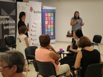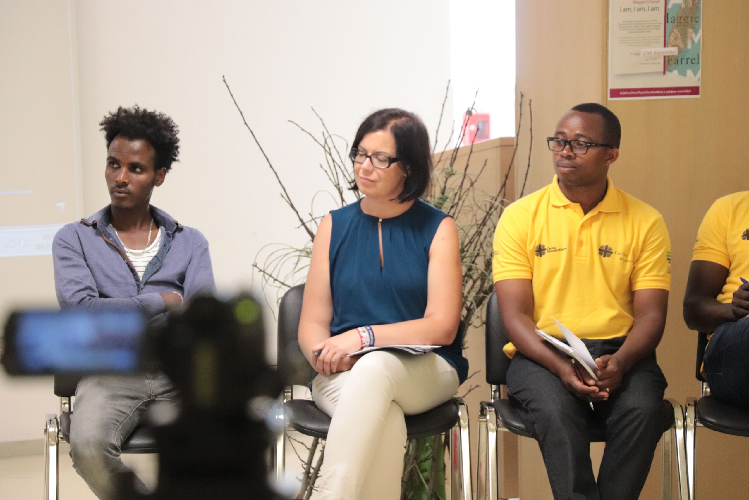 Irma Šinkovec, sodelavka Sektorja za razvojno sodelovanje in humanitarno pomoč na Ministrstvu za zunanje zadeve RS je s prisotnimi delila svoje izkušnje: »Največ časa v tujini sem preživela v okviru razvojnih projektov v Ugandi. Kot tujka sem bila večinoma dobro sprejeta. K temu je verjetno pripomogla tudi moja odprtost in tudi nekaj besed, ki sem se jih naučila v njihovem jeziku. To je bila lepa izkušnja. Kar me je pretreslo na teh poteh pa je, kako veliki so kampi beguncev in kako si vsi, s katerimi smo se pogovarjali, želijo vrnitve domov. Zato vidim največjo potrebo za pomoč ljudem, ki se srečajo z okoliščinami, ki povzročajo migracije, v mednarodnem razvojnem sodelovanju in aktivnostih v lokalnih okoljih.«