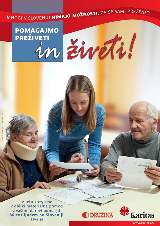 Slovenska karitas vas vabi na novinarsko konferenco ob pričetku dobrodelne akcije Pomagajmo preživeti in živeti, ki je namenjena predvsem ljudem z nizkimi prihodki, materialni pomoči starejšim in socialnemu vključevanju trajno nezaposljivih v Sloveniji. Poleg akcije bomo predstavili tudi poročilo o pomoči celotne mreže Karitas v letu 2025.