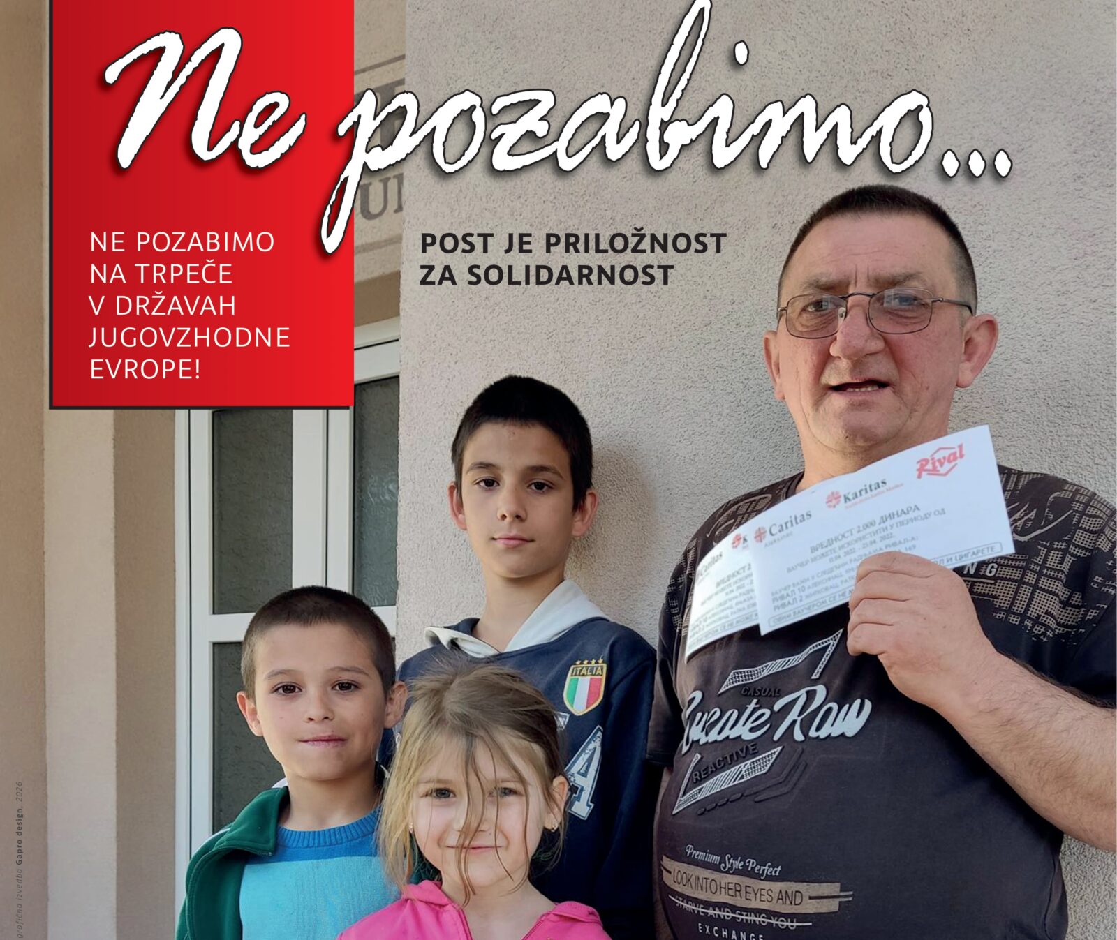 Slovenska karitas začenja z vsakoletno postno dobrodelno akcijo Ne pozabimo. Letos je 19. zapovrstjo in je namenjena pomoči najrevnejšim na območjih jugovzhodne Evrope. Z zbranimi sredstvi se pomaga ranljivim družinam, otrokom in starejšim v Bosni in Hercegovini, Srbiji, Severni Makedoniji, Črni Gori in Albaniji. V teh državah danes na tisoče ljudi živi na robu preživetja. Bolni, starejši brez pokojnin ter družine z nizkimi dohodki, se vsak dan soočajo z revščino, ki se iz leta v leto poglablja. Mladi zaradi pomanjkanja dela odhajajo v tujino. Na Slovenski karitas skupaj z našimi Škofijskimi karitas preko akcije Ne pozabimo v sodelovanju z lokalnimi Karitas in cerkvenimi ustanovami v državah JV Evrope pomagamo lajšati te tiske revnih in prinašamo upanje. Podpiramo pomoč v obliki paketov hrane, higienskih pripomočkov, šolskih potrebščin, ljudskih kuhinj, ambulant in nege na domu za starejše, bolne ter pomagamo z opremo in obnovo hiš najranljivejših. Za mnoge je topel obrok Karitasa edini obrok dneva, paket hrane ali drugih dobrin pa pomeni dostojanstvo in občutek, da niso sami.